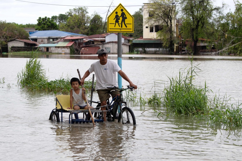 7月25日,人们在菲律宾卡伦皮特水淹的街道上出行。新华社/法新