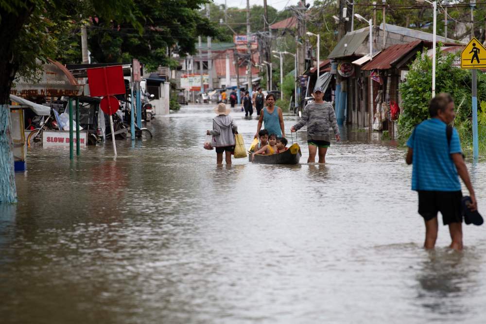 7月25日,人们在菲律宾卡伦皮特一条积水的街道上出行。新华社/法新