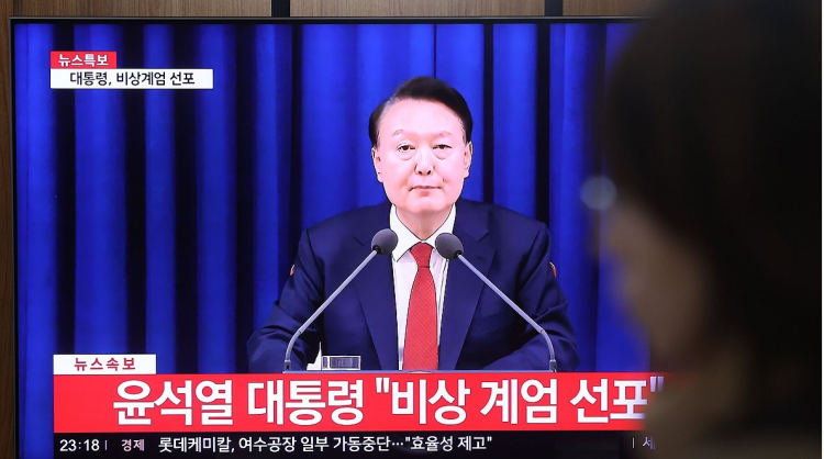 去年12月3日,时任韩国总统的尹锡悦发布紧急戒严令 图源:韩媒