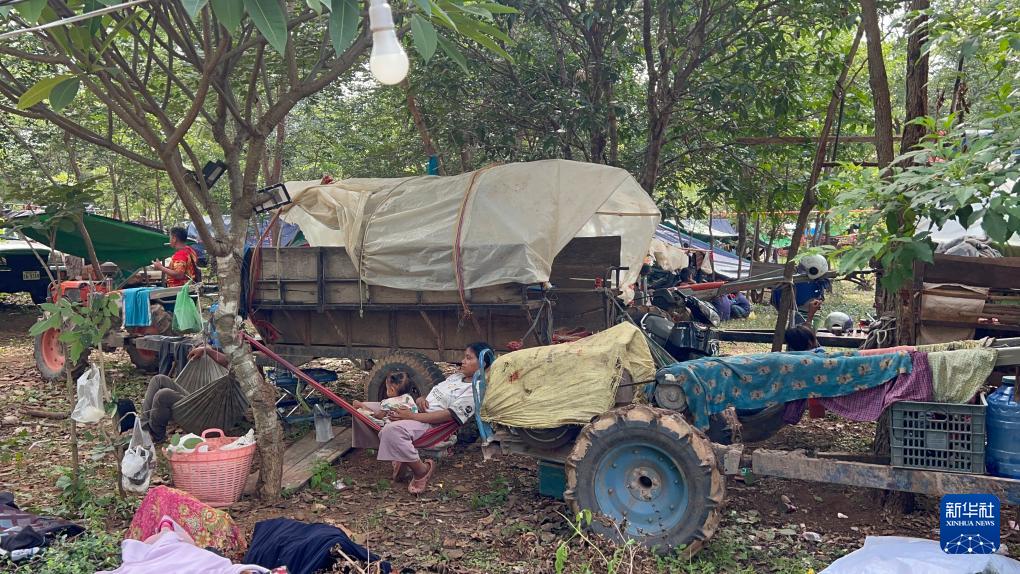 7月24日,人们在柬埔寨奥多棉吉省的一处临时安置场所休息。新华社发(尼多拉摄)