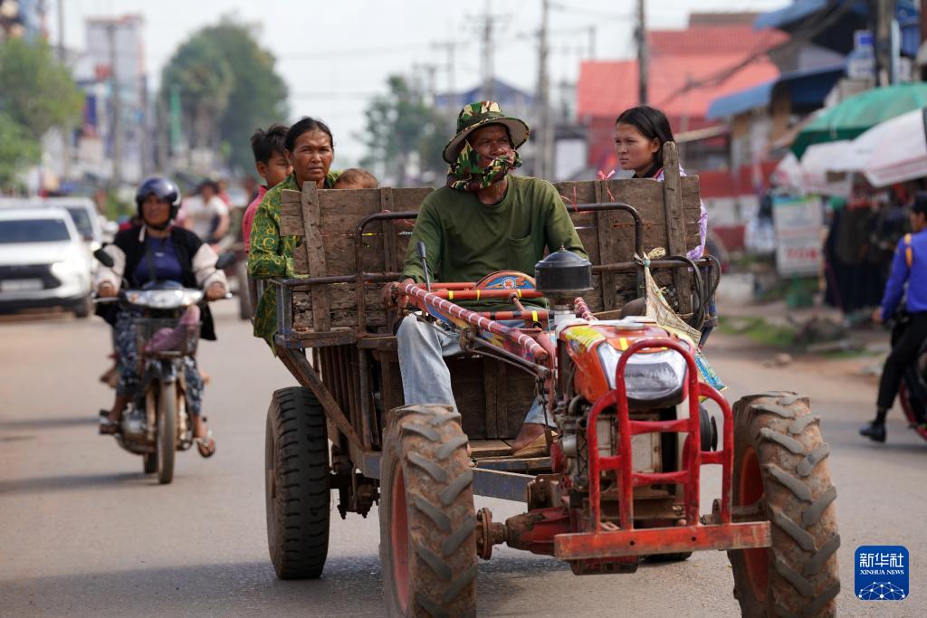 7月25日,在柬埔寨奥多棉吉省,边境居民驾车撤离。新华社发(尼多拉摄)