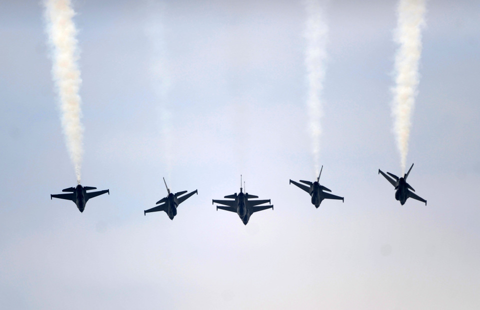 2011年8月17日,在印度尼西亚首都雅加达,战机在庆祝仪式中飞越印尼总统府上空。新华社记者姜帆摄