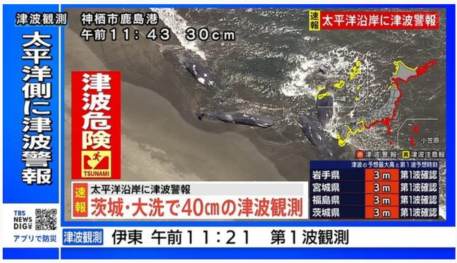 日本东京广播公司在报道海啸警报时插播了鲸鱼搁浅的消息,鉴于千叶县也是海啸警报涉及的地区,当地提醒民众千万不能前往鲸鱼搁浅的现场,以免危及自身安全。