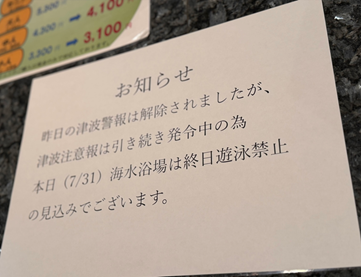 8月31日上午,潮新闻记者联系到了正在日本白滨旅行的小绿则,她表示,此次海啸警报对其行程造成了一定影响:“昨天除出租车外,所有公共交通都暂停运营,沿街的餐厅和超市也全部停业。”