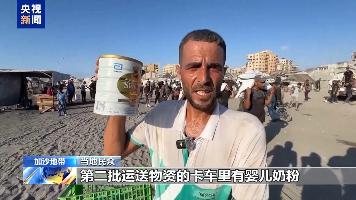 当地民众:我们去齐基姆口岸领面粉,但我进不去,因为以色列军队在向我们开枪。第二批运送物资的卡车里有婴儿奶粉,我有三个孩子,我最终拿到了两罐奶粉,一罐给我的孩子们,另一罐留给其他需要的人。