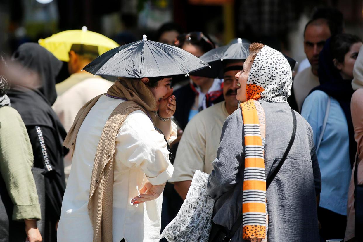 7月22日,人们在伊朗首都德黑兰戴小伞遮阳。新华社发
