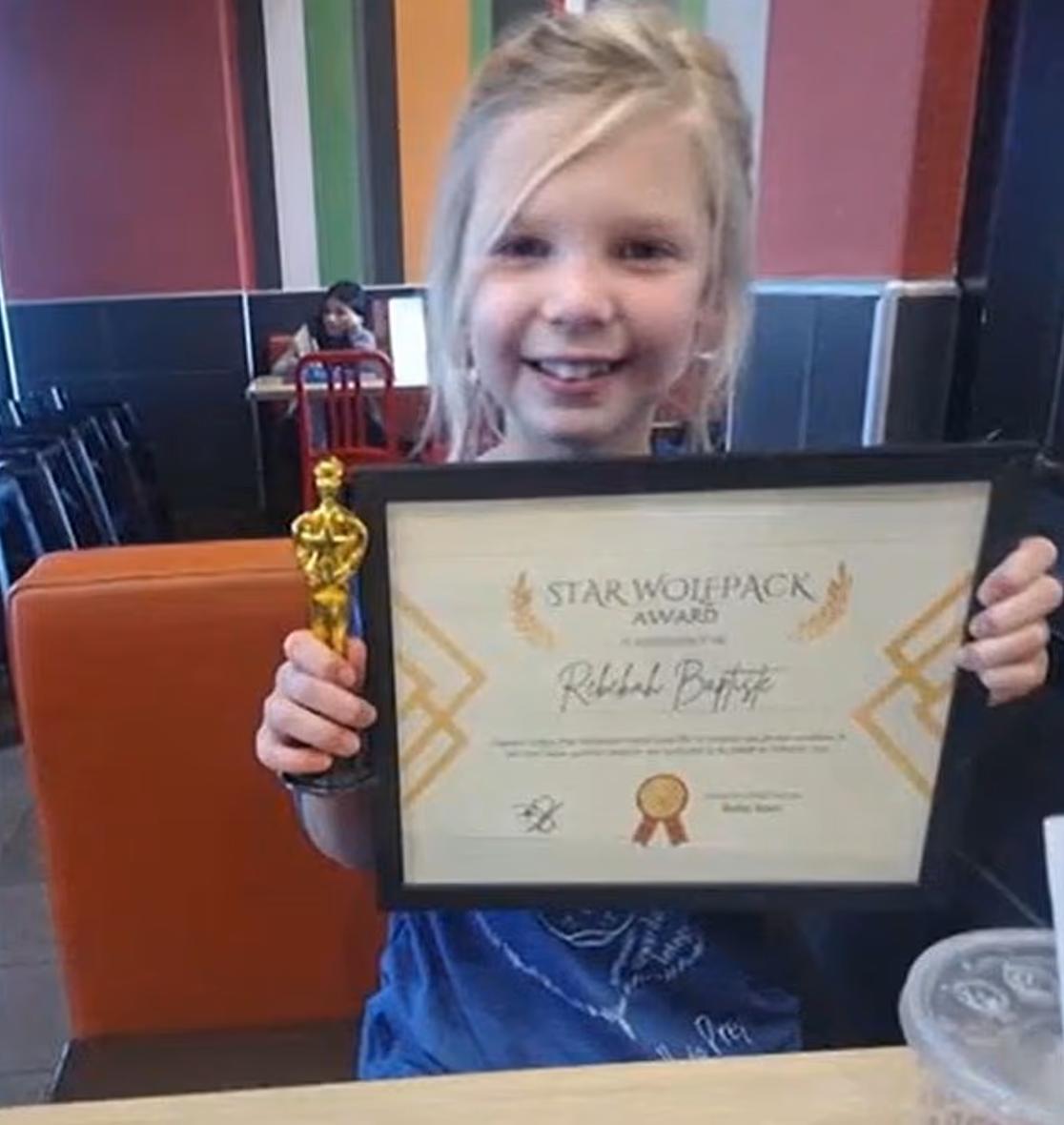 (丽贝卡在学校表现突出。)