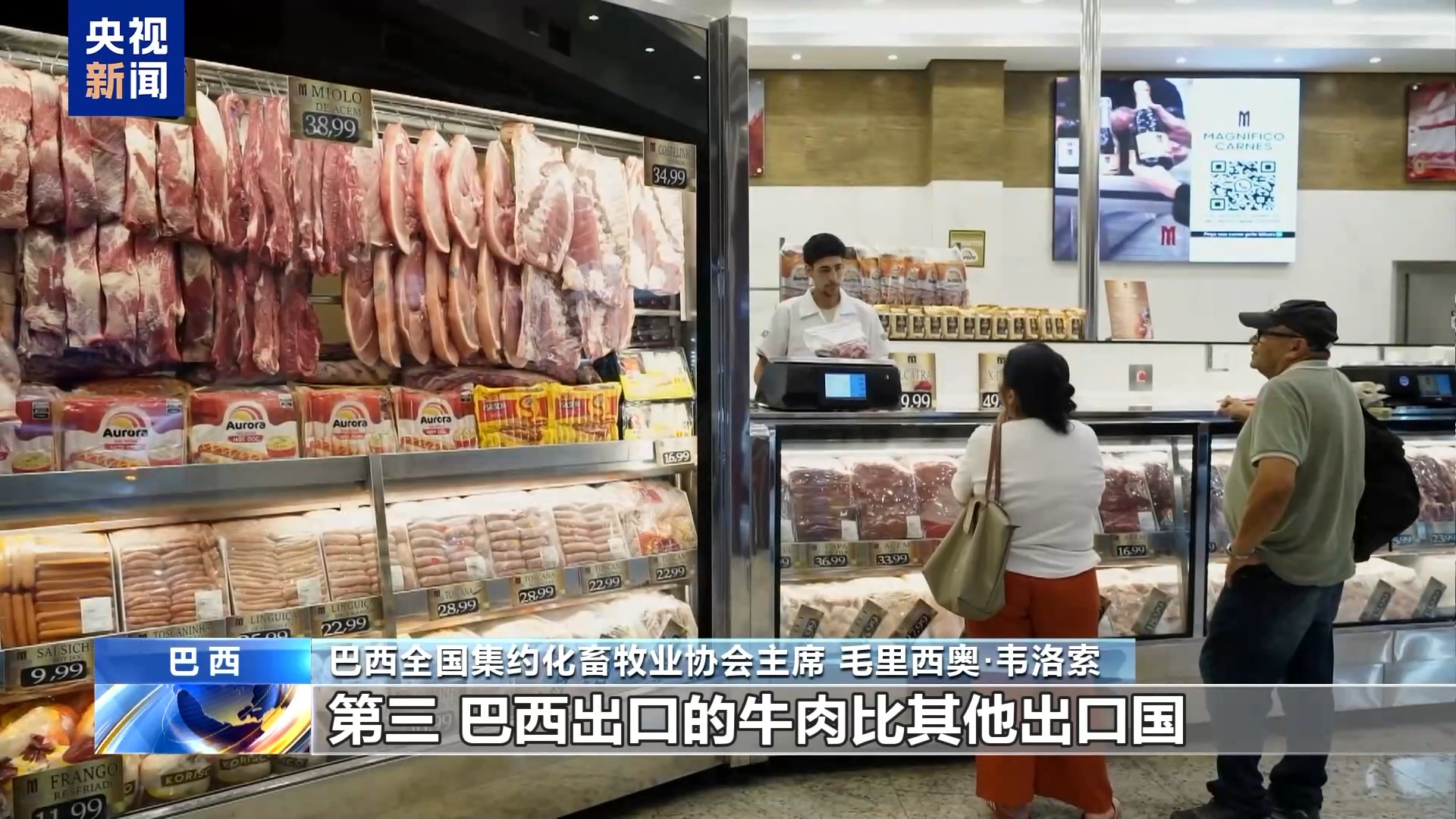 巴西全国集约化畜牧业协会主席 毛里西奥·韦洛索:因为美国本土牛肉在加工时会产生大量脂肪,而巴西牛肉则相对瘦,这使得它非常适合与脂肪牛肉混合,制作肉丸和汉堡所需要的肉脂配比,所以,巴西牛肉对美国经济和人们日常饮食结构都非常重要。今后,美国如果想满足本国市场需求,就得付出更高的成本,不只是价格高,而且还会造成产业链上的困难。