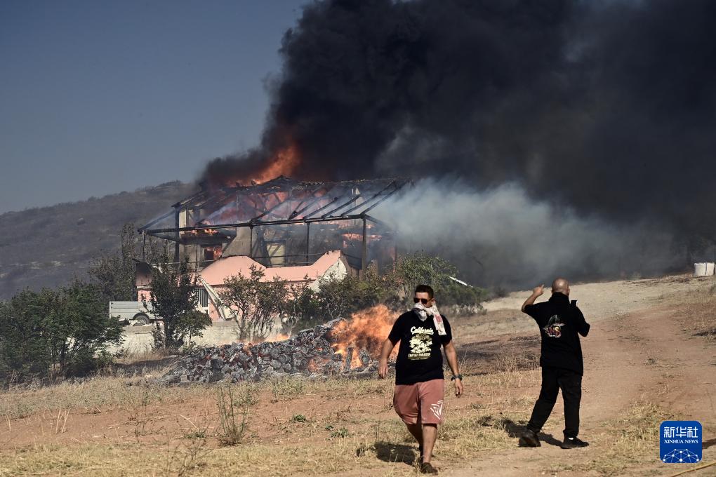 8月8日,希腊首都雅典东南约35公里的凯拉泰阿镇出现严重火情,当地房屋被焚毁。新华社发(马里奥斯·罗洛斯摄)