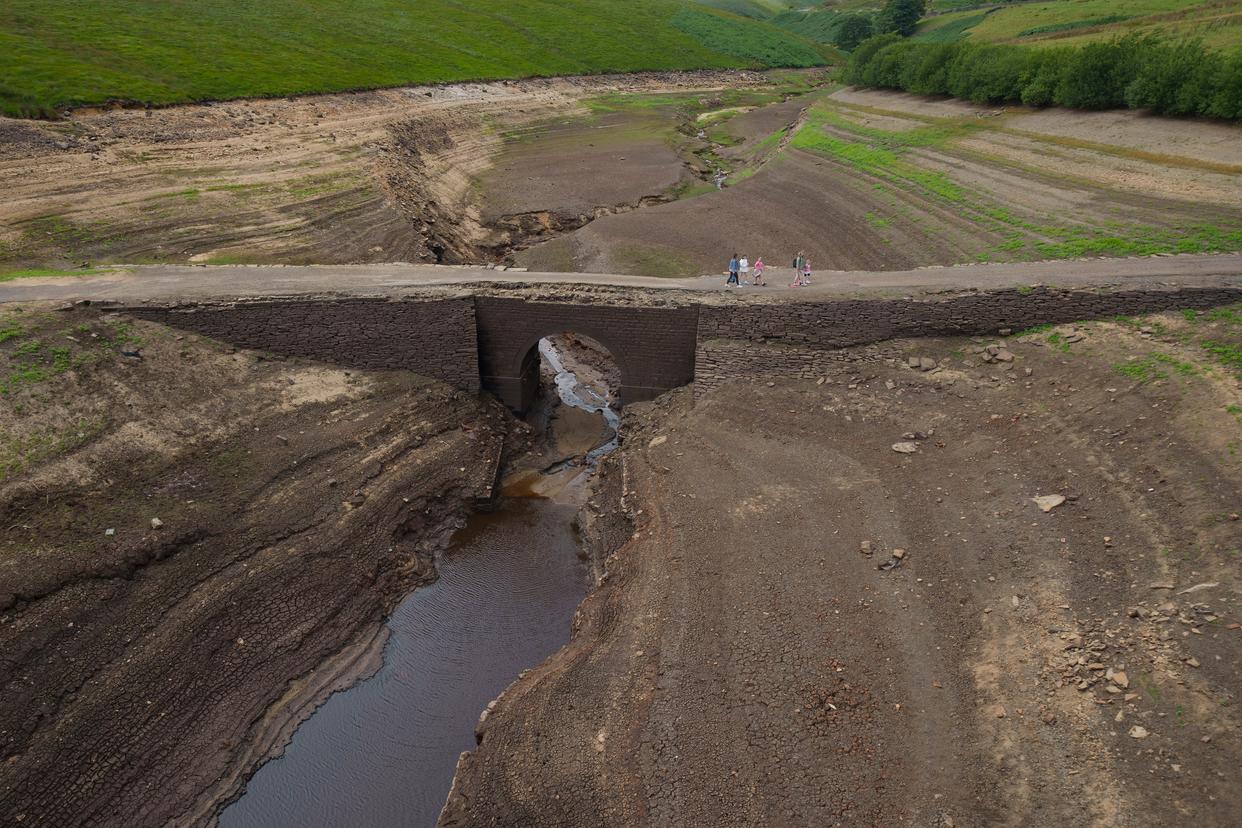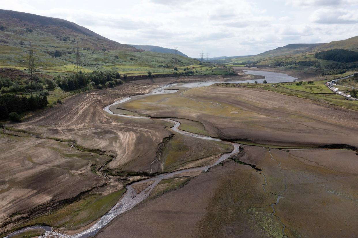 这是8月8日在英国约克郡拍摄的水位下降的布斯伍德水库。新华社发(乔恩·休珀摄)
