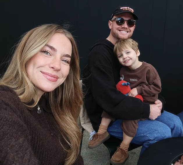 (艾米莉·基瑟是一名美国女网红,丈夫手中抱的孩子特里格今年5月溺亡。)