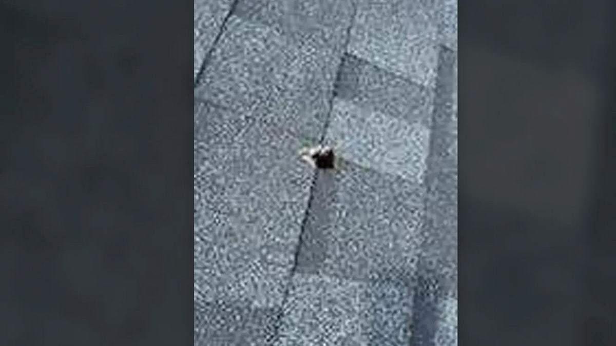 (陨石碎片在佐治亚州一户人家的屋顶上留下了一个洞。)
