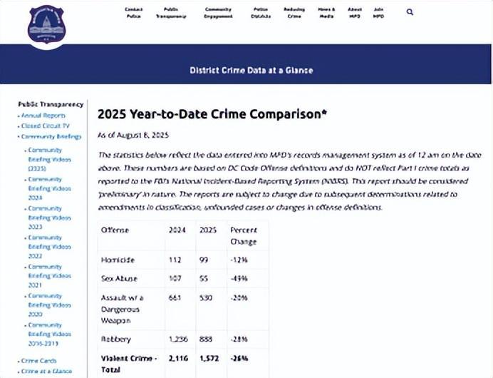 根据华盛顿特区警察局网站公布的数据,2024年以来,首都整体案件数在下降。