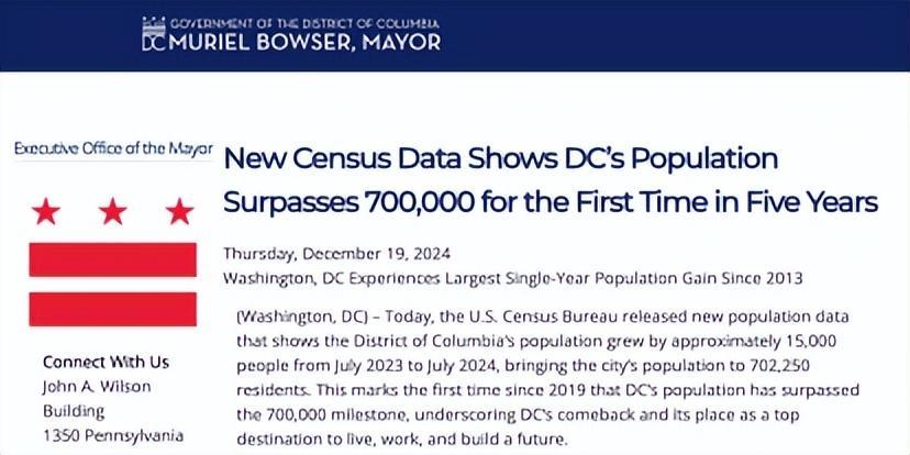 据华盛顿特区政府网站公布,特区人口目前达到702,250人,突破70万大关。