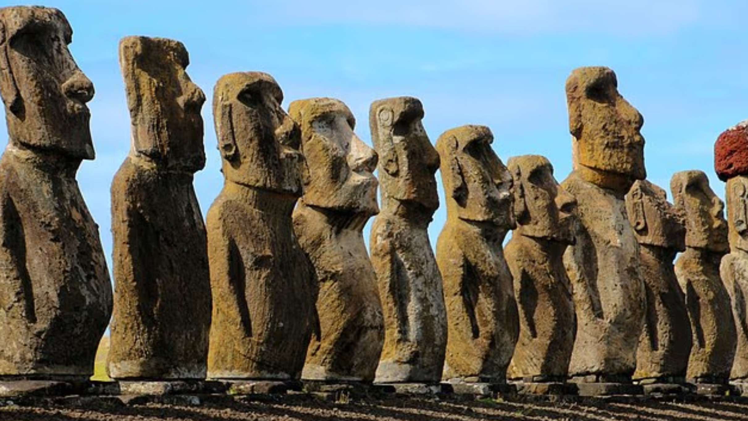 (摩艾是复活节岛标志性巨石人像,距今约700至1000年。)