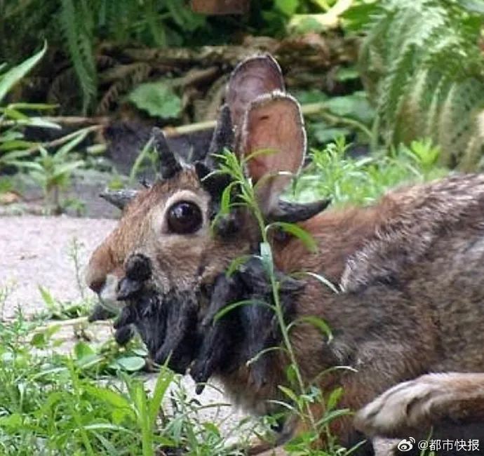 近日,越来越多的人在美国科罗拉多州发现触手兔子。据报道,这种兔子的的脸上长出黑色的触手状赘生物,而且出现率正在上升。当地居民称,自己在前一年冬天就发现了这样的兔子,第二年这只兔子回来了,还长得很大。