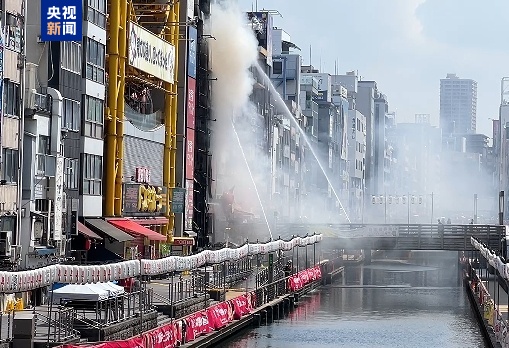 当地时间8月18日上午,日本大阪市道顿堀地区一栋建筑发生火灾,消防部门一度出动数十辆消防车和1架直升机进行灭火工作。