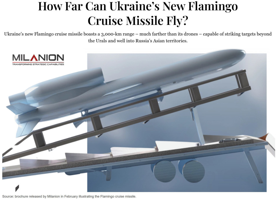大概率看,“火烈鸟”这种新式导弹系统应该是乌克兰研制的一种远程自杀式无人机,但是结合了巡航导弹的技术特点,能够针对远距离目标进行精准打击和摧毁。
