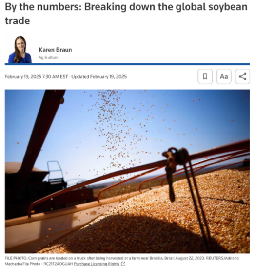 △路透社在对全球大豆贸易的分析报道中提到,巴西大豆出口量比美国高出约80%。