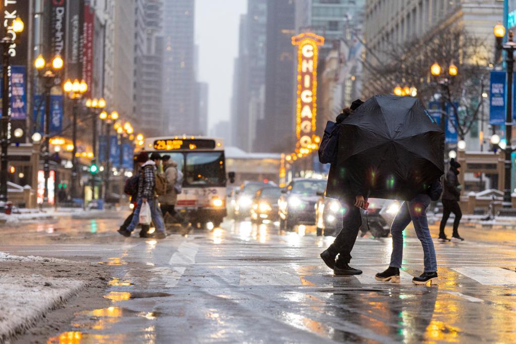 2月12日,行人走在美国芝加哥市中心。新华社发(文森特·约翰逊摄)