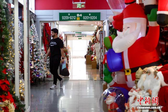 5月28日,在义乌国际商贸城专售圣诞用品的区域,一位外籍采购商走过。董易鑫摄