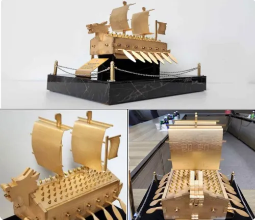 这艘龟船金属模型长30厘米、宽25厘米,以“龟船”为原型制作而成。