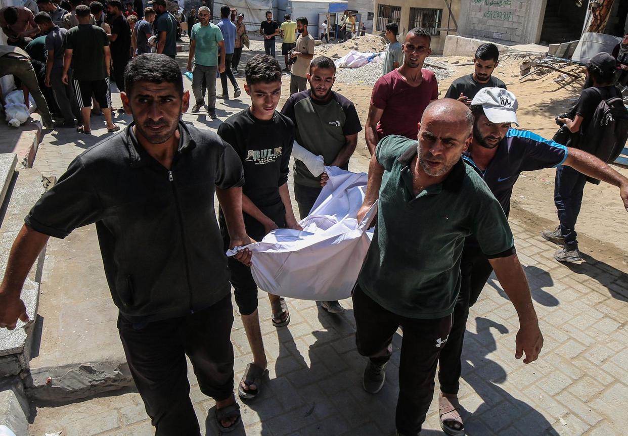 8月30日,人们在加沙城一所医院搬运空袭遇难者遗体。新华社发(里泽克·阿卜杜勒贾瓦德摄) 上述官员以未获授权发布消息为由要求匿名。