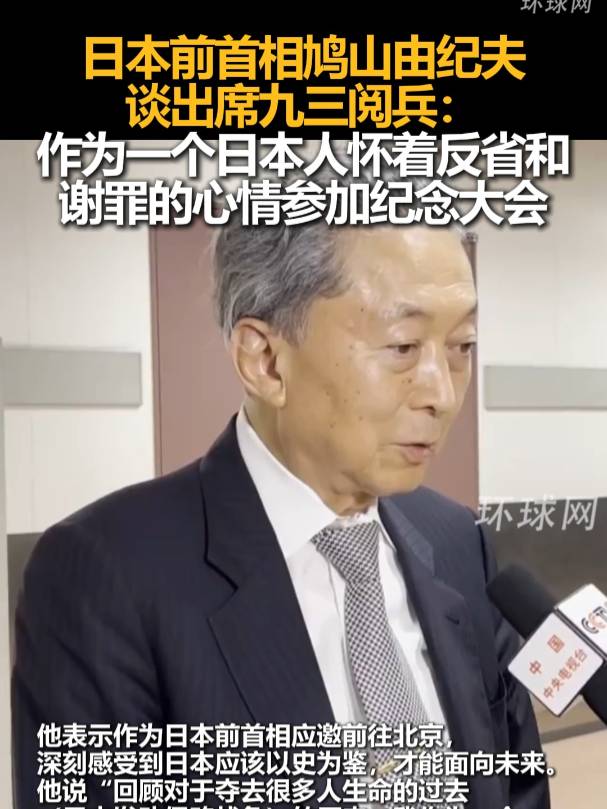 9月4日,应邀出席纪念中国人民抗日战争暨世界反法西斯战争胜利80周年大会的日本前首相鸠山由纪夫返回日本,在东京机场第一时间接受了总台记者的独家采访。
