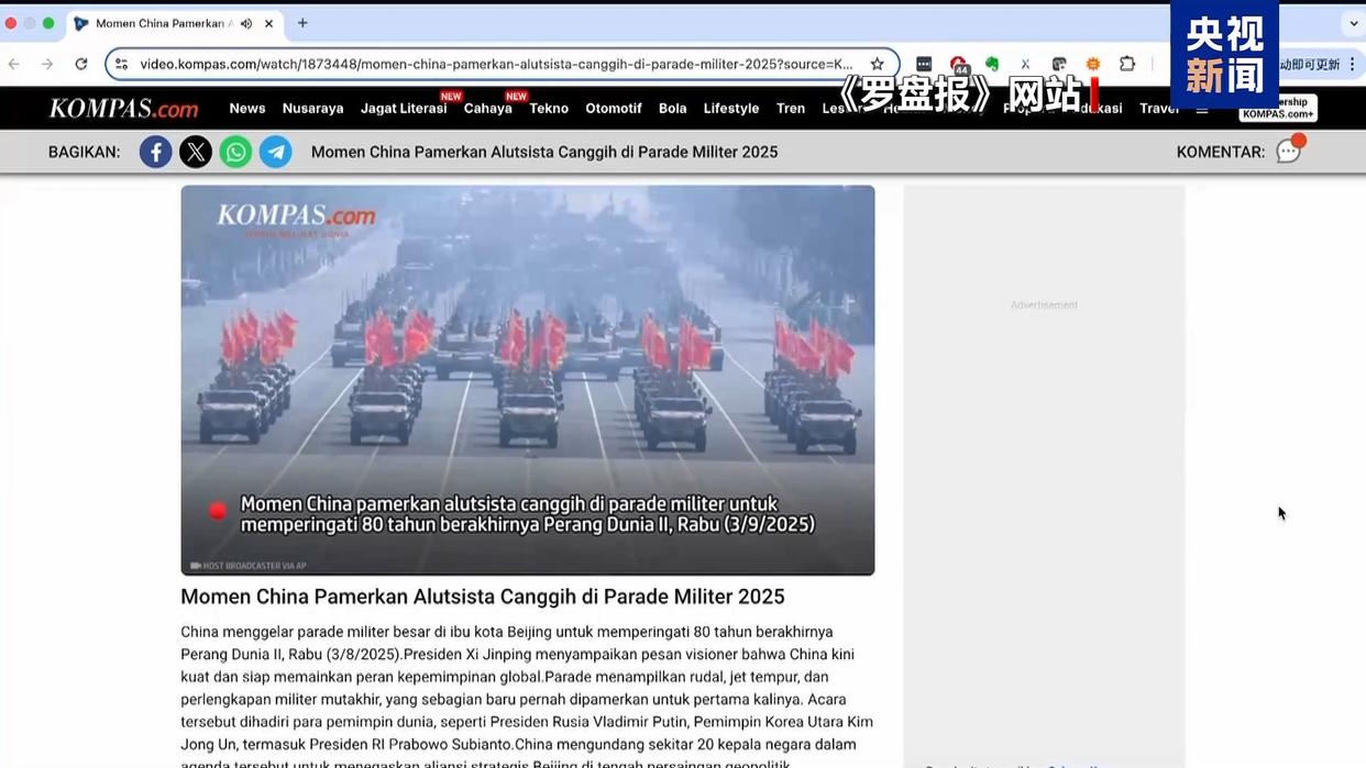 印尼《罗盘报》网站报道称,阅兵仪式展示了习近平主席领导下的中国现代化军事力量。