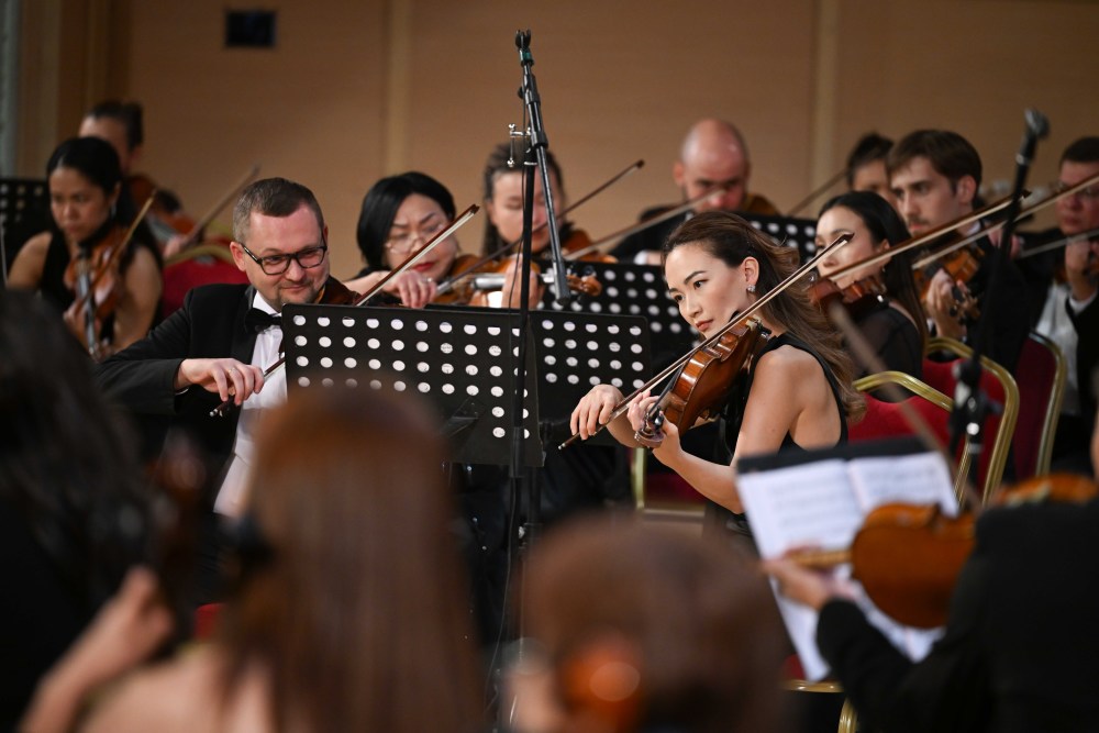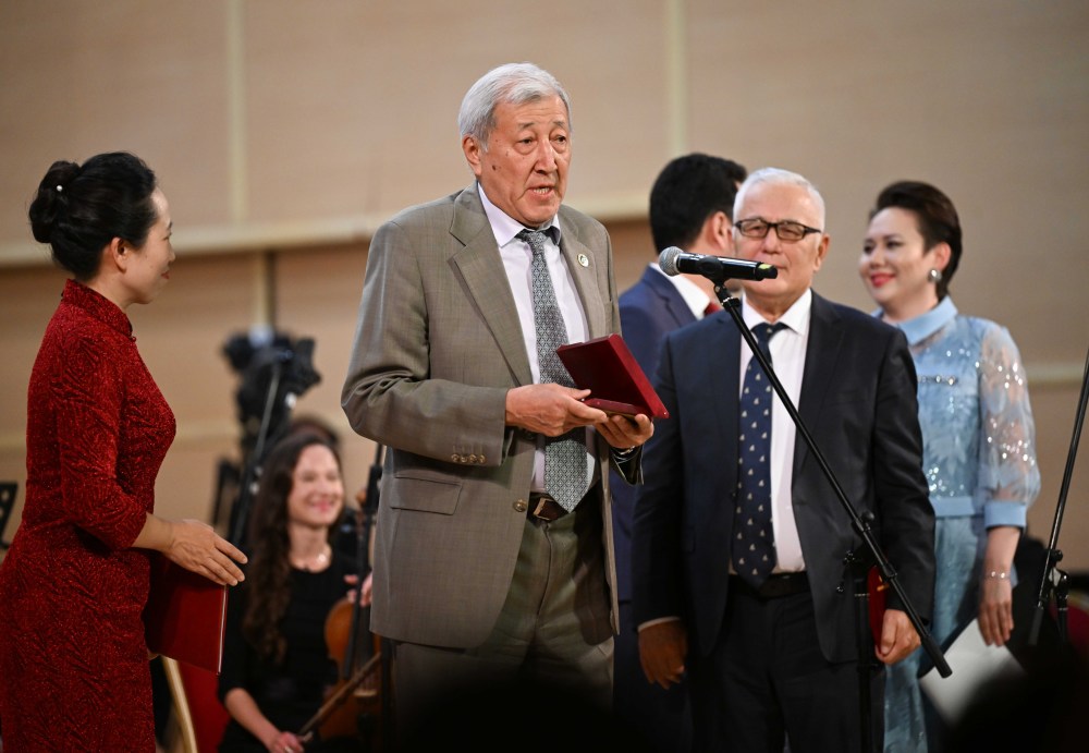 纪念中国人民抗日战争暨世界反法西斯战争胜利80周年、纪念冼星海诞辰120周年音乐会3日晚在哈萨克斯坦阿拉木图的国立江布尔音乐厅举行。阿市政府、外交领事机构、老兵协会、当地华侨华人、中资机构、留学生等各界人士近600人出席。哈国立拜卡达莫夫合唱团、阿布德拉舍夫国立模范交响乐队共同演绎《黄河大合唱》《阿曼盖尔德》等作品。观众们自发挥舞中哈两国国旗,齐声高唱歌曲,现场气氛澎湃激昂。