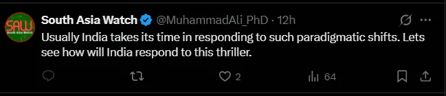 此外,一些巴基斯坦的账号也认为卢特尼克对印度如此赤裸裸地侮辱很过分。有巴基斯坦网民表示,他们也将关注印度会如何回应。
