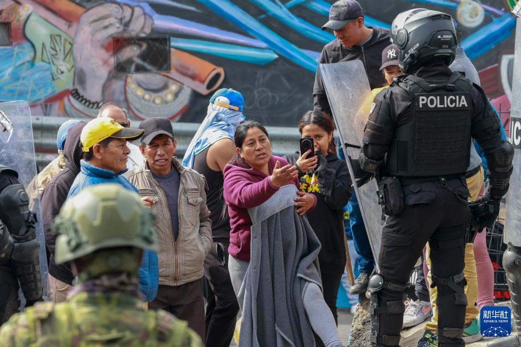 9月16日,在厄瓜多尔首都基多,武装部队人员和警察在道路上维持秩序。新华社发(里卡多·兰德塔摄)