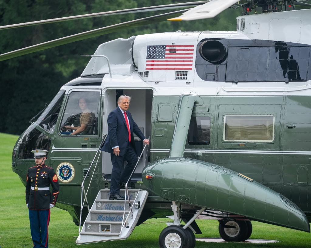 9月16日,在美国首都华盛顿,美国总统特朗普登机离开白宫。新华社记者胡友松摄