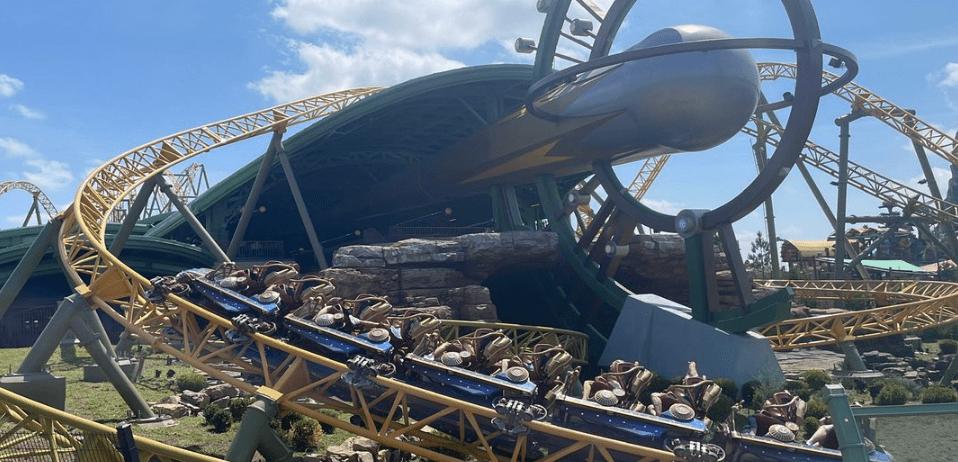 史诗宇宙园区总投资逾70亿美元,于四个月前正式开放。星尘赛车手为园区的旗舰云霄飞车设施,长约1.5公里,高达40.5米,采用双发射双轨道设计,两列列车可同时竞速,模拟彗星穿梭太空的高速体验,最高时速可达100公里,号称是园区内最刺激的项目之一。