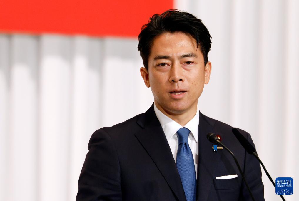 9月22日,在日本东京,日本自民党总裁选举候选人、农林水产大臣小泉进次郎在自民党总裁选举政见发表演讲会上发言。新华社发(Pool图片,弗兰克·罗比雄摄)