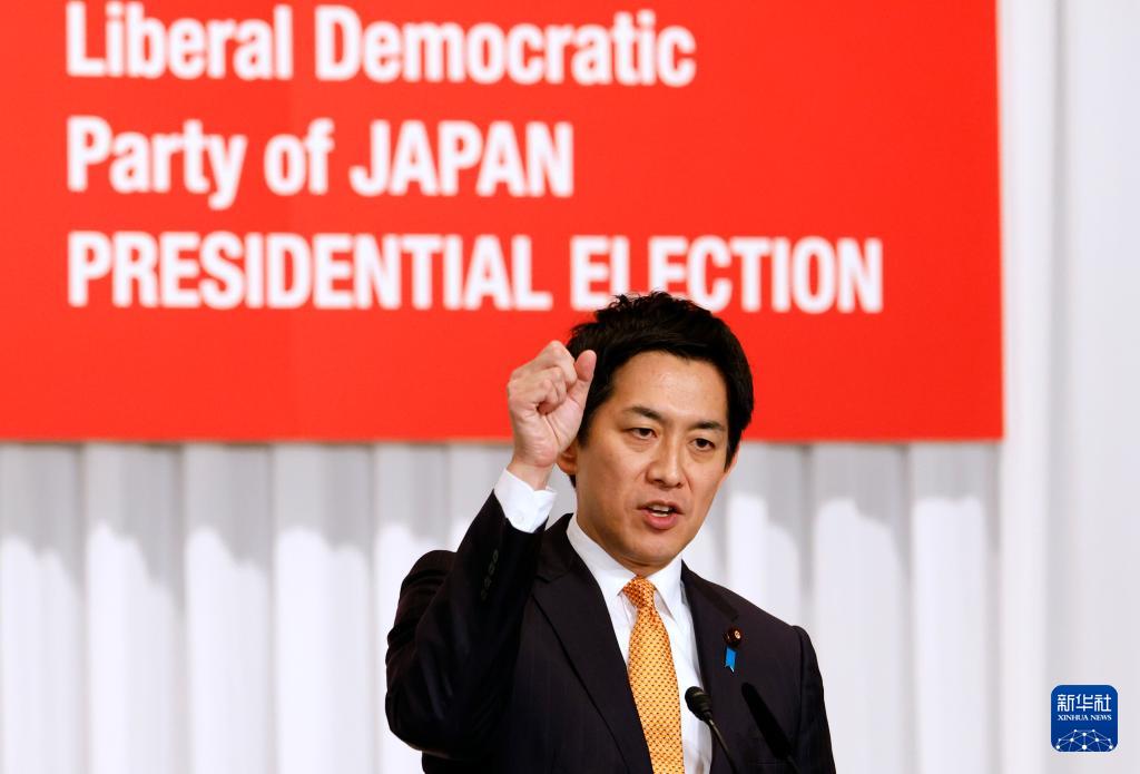 9月22日,在日本东京,日本自民党总裁选举候选人、前经济安全保障担当大臣小林鹰之在自民党总裁选举政见发表演讲会上发言。新华社发(Pool图片,弗兰克·罗比雄摄)