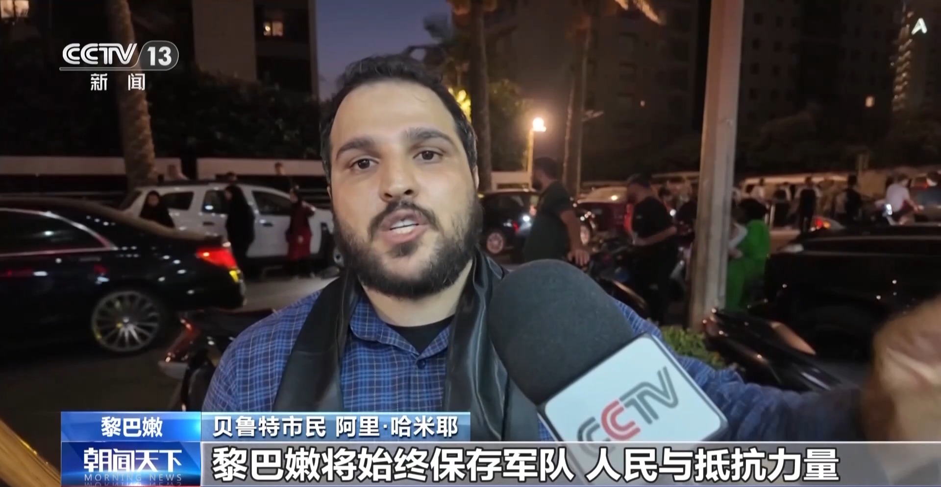 贝鲁特市民 阿里·哈米耶:黎巴嫩将始终保存军队、人民与抵抗力量,这是黎巴嫩人民的信念,这是黎巴嫩人民的意志。这一信念将永远屹立。