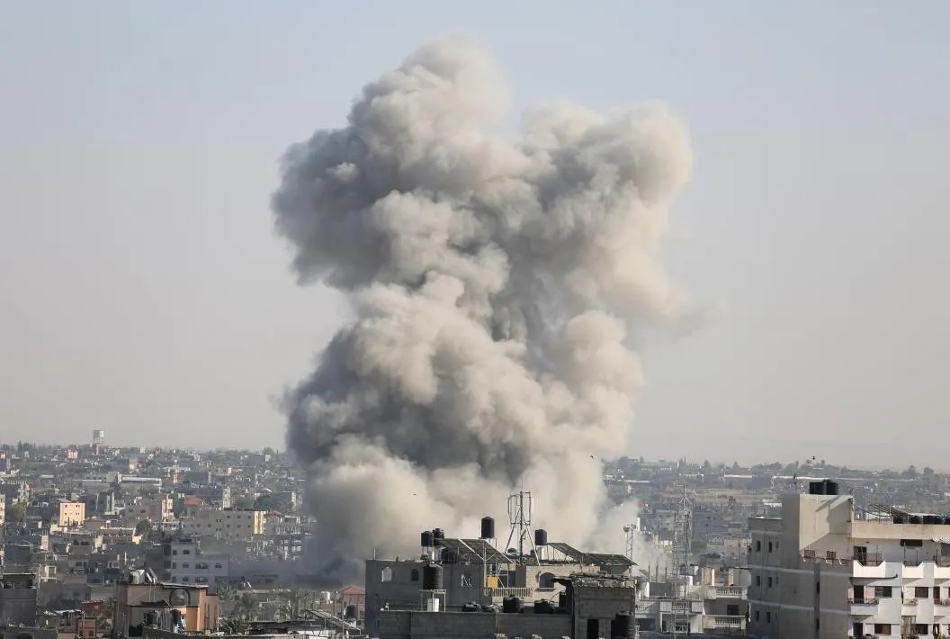2023年10月26日,以色列空袭造成的浓烟从加沙地带城市拉法城中升起。新华社发(哈立德·奥马尔摄)