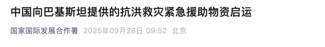 2025年9月28日凌晨,中国政府向巴基斯坦追加提供的抗洪救灾紧急援助首批物资启运。该批救灾物资主要包括帐篷、毛毯等,由中国空军两架运-20飞机运往伊斯兰堡。其余批次救灾物资将于近日陆续发运。