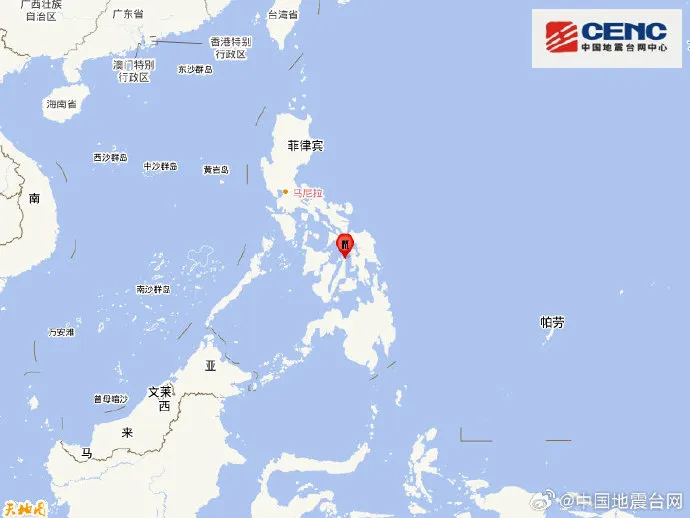 中国地震台网正式测定:09月30日21时59分在菲律宾群岛地区(北纬11.20度,东经124.10度)发生6.9级地震,震源深度10千米。