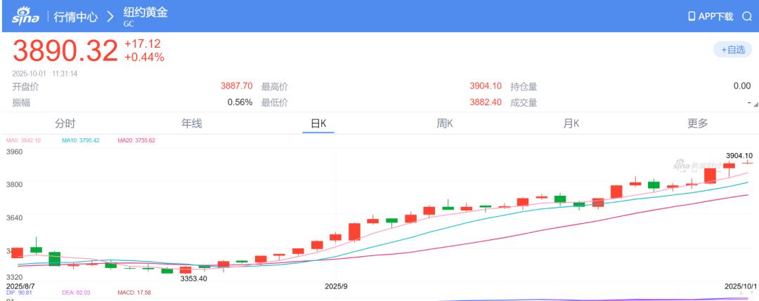 美股三大期指齐跌,国际金价继续狂飙。现货黄金一度涨至3875美元,截至发稿报3863.08美元,纽约黄金期货一度突破3900美元大关,截至发稿报3890美元。