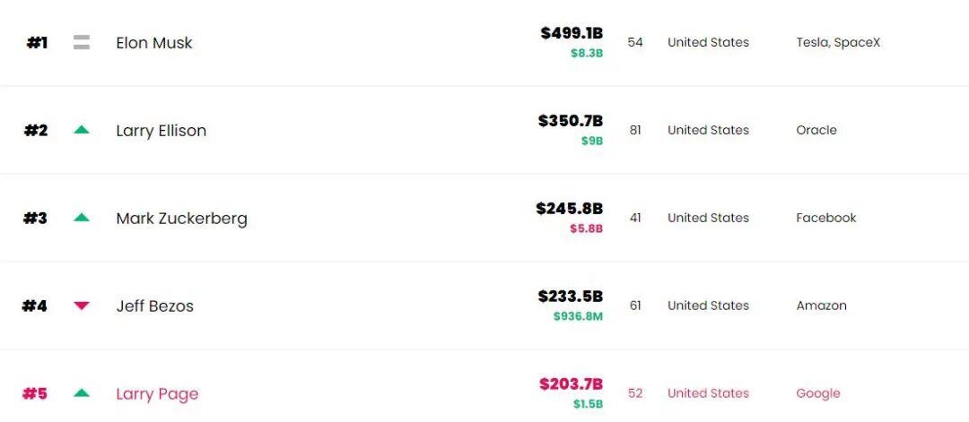 据《福布斯》实时富豪榜显示,截至美国东部时间10月1日下午4点15分,马斯克的净资产已达5001亿美元,比全球第二大富豪、美国软件公司甲骨文的创始人埃里森的个人资产多近1500亿美元。不过,随着特斯拉股价在当天美股尾盘涨幅收窄,马斯克的身价也出现缩水。截至当天收盘,马斯克身价约4991亿美元。