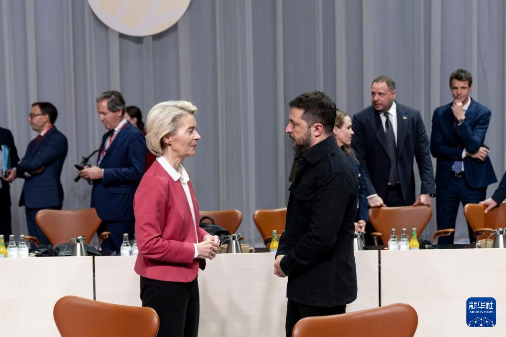 10月2日,在丹麦首都哥本哈根,乌克兰总统泽连斯基(右)与欧盟委员会主席冯德莱恩在欧洲政治共同体领导人会议期间交谈。新华社发(孔斯豪格摄)