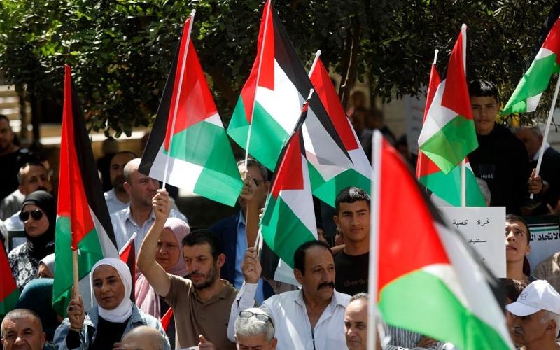▲9月23日,在约旦河西岸城市希伯伦,民众挥舞巴勒斯坦旗帜参加庆祝多国承认巴勒斯坦国。图/新华社