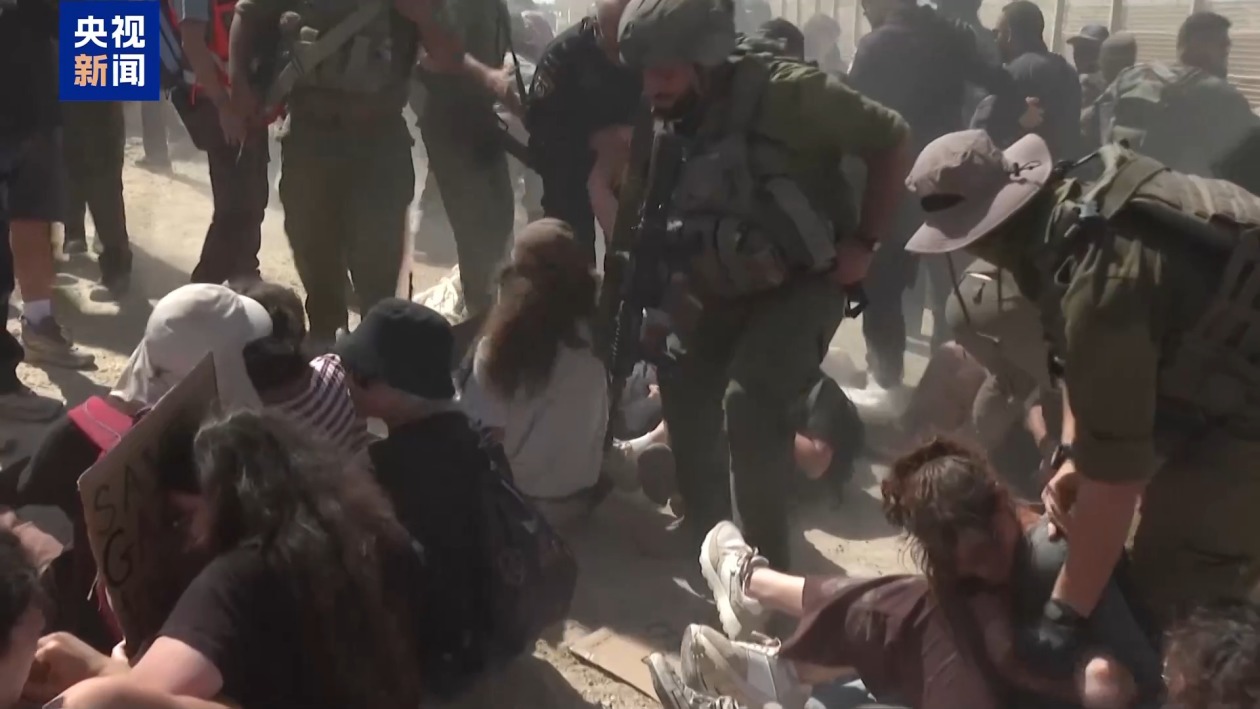 10月3日,以色列抗议者聚集在以色列和加沙地带的边界,抗议以色列拦截试图向加沙地带运送援助物资的“全球坚韧船队”,并谴责以色列在加沙地带的种族灭绝行为。