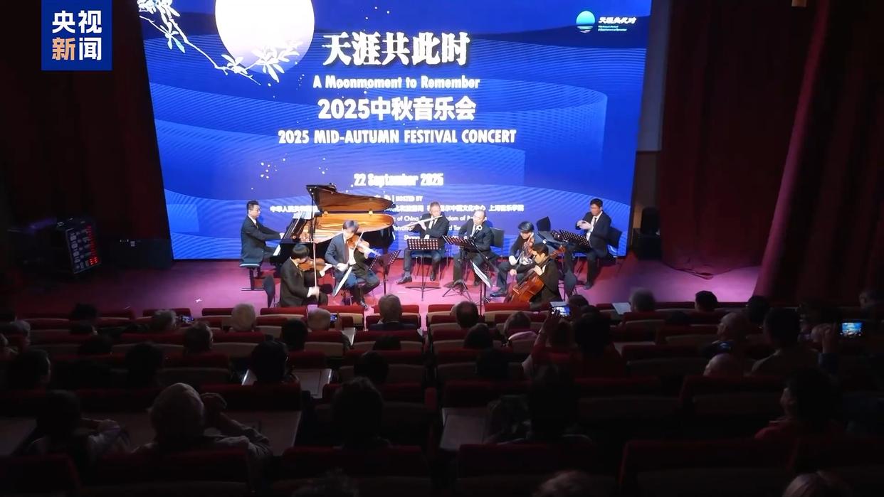 2025“天涯共此时”中秋音乐会在比利时的布鲁塞尔中国文化中心举行,中比各界代表等160余人参加活动。来自上海音乐学院的音乐家们演绎了《花好月圆》等经典曲目。