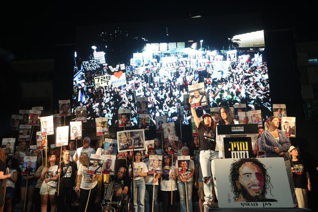10月4日,被扣押人员家属和支持停战的人们在以色列特拉维夫举行游行集会,要求政府迅速在加沙地带实现停火,让被扣押人员回家。新华社发(吉尔·科恩·马根摄)