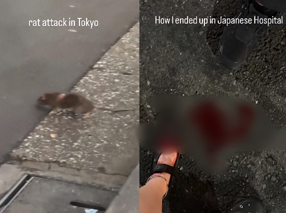 (日本东京街头老鼠“横行”,女游客被咬伤出血。)