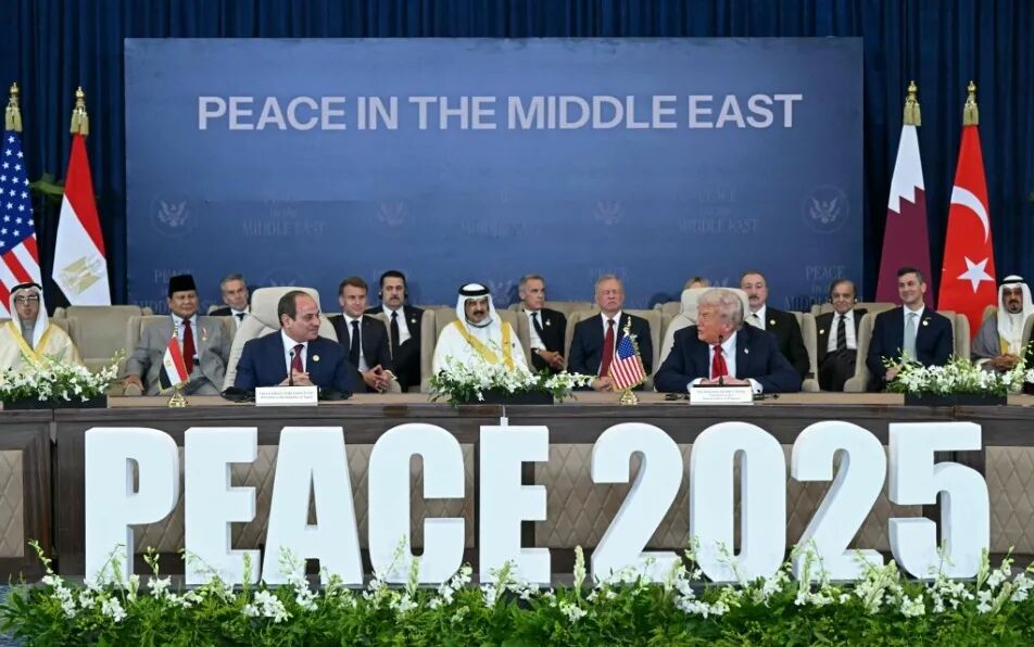 会议期间,埃及总统塞西、美国总统特朗普、卡塔尔埃米尔(国家元首)塔米姆和土耳其总统埃尔多安签署一份文件。据埃及《金字塔报》等中东国家媒体报道,四国领导人在这份文件中以担保方身份承诺支持加沙停火协议落实。