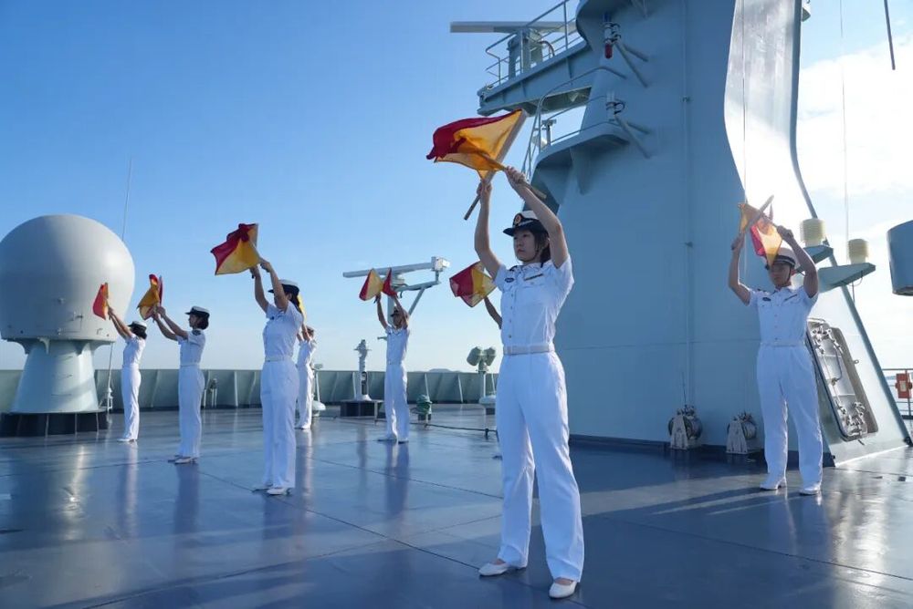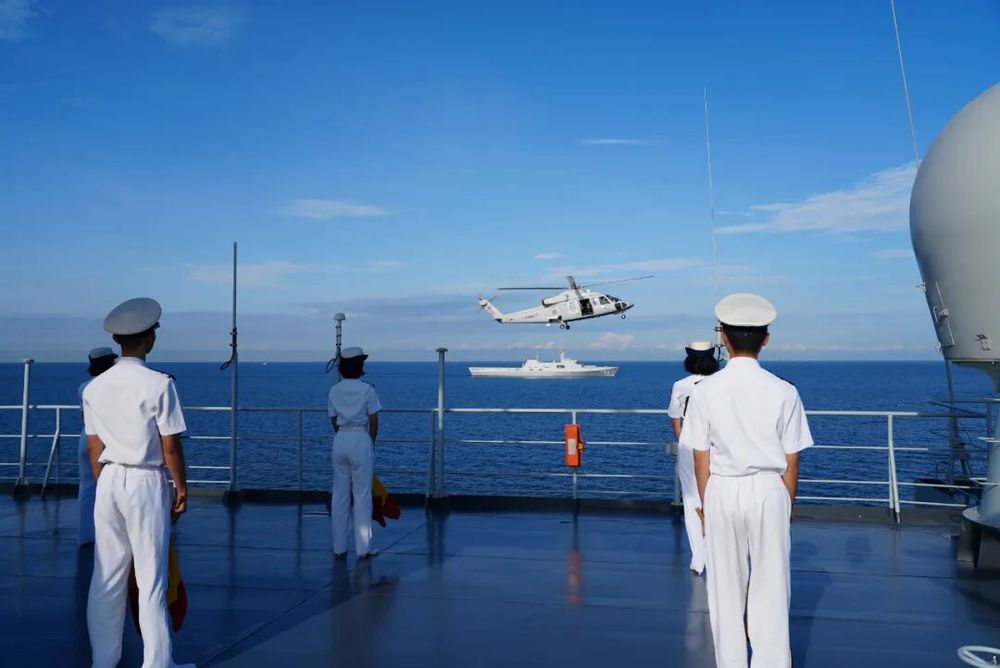 仪式后,欢迎队伍登舰参观,由83舰编队官兵组成的仪仗队,在戚继光舰飞行甲板接受张建卫大使检阅。官兵精神抖擞,展现了中国海军的良好形象。